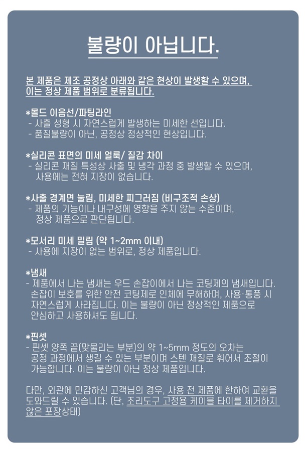 · 상품 불량 사유와 사진을 남겨 주시면 빠른 처리가 가능합니다.
