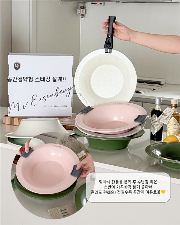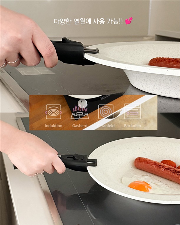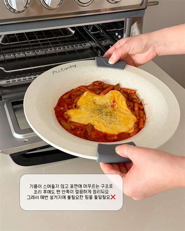 -팬을 옮길 필요없이 그대로 식탁으로 접시대용 사용하는 플라잉팬