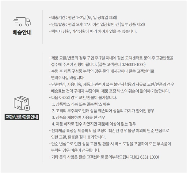 · 교환/반품/AS 등은 "공정거래위원회"에서 정한 소비자 분쟁 해결 기준을 따르고 있습니다.