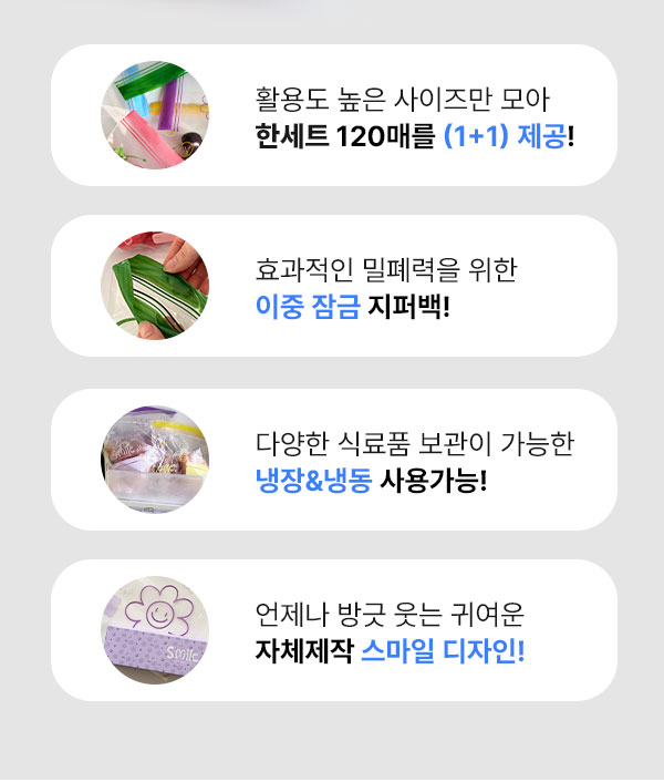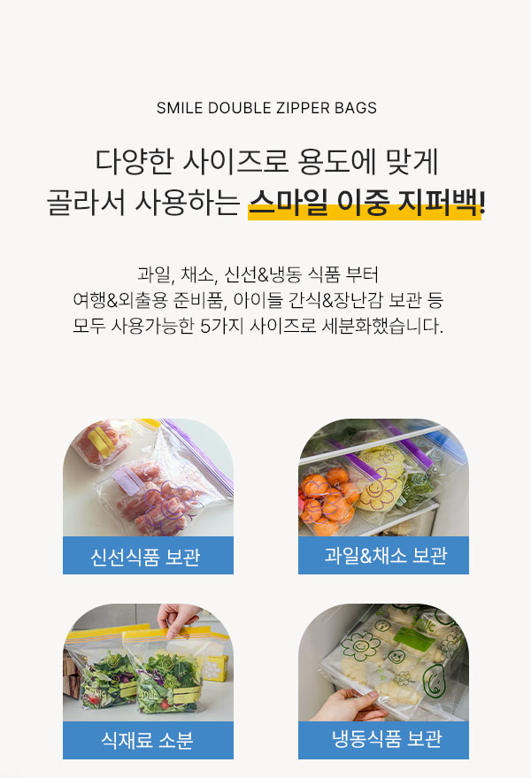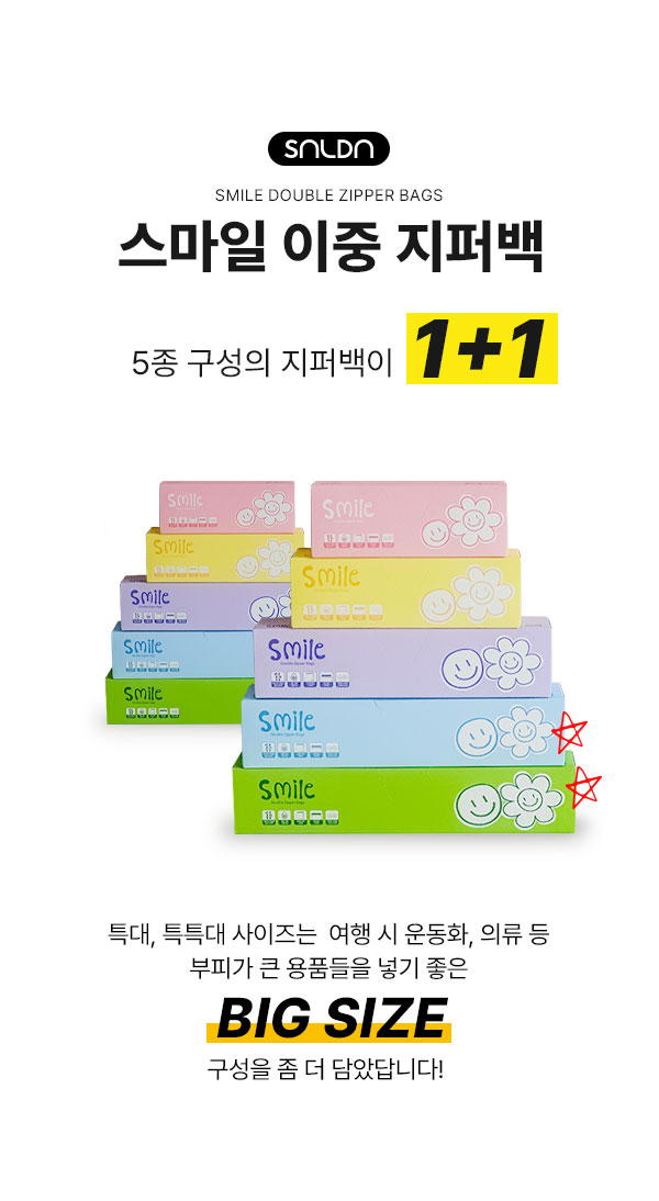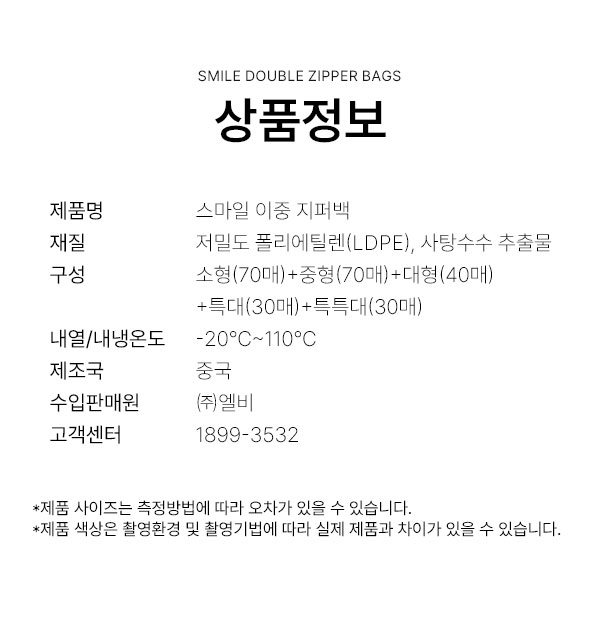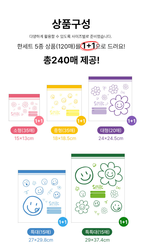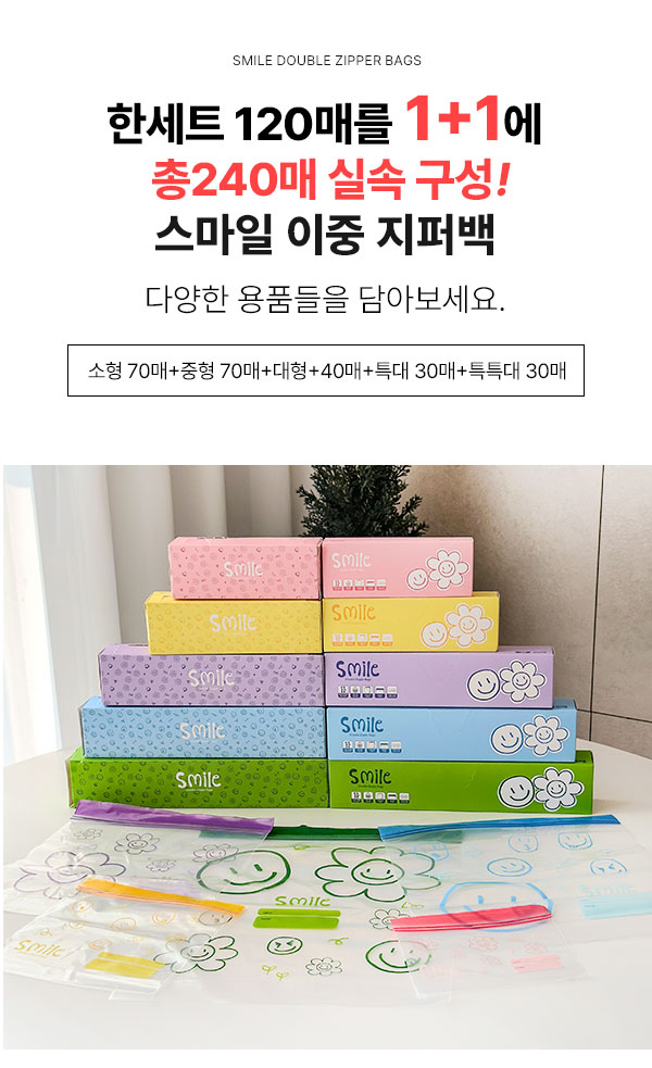 *상품명 : 스마일 이중 지퍼백 1+1 (총 240매)