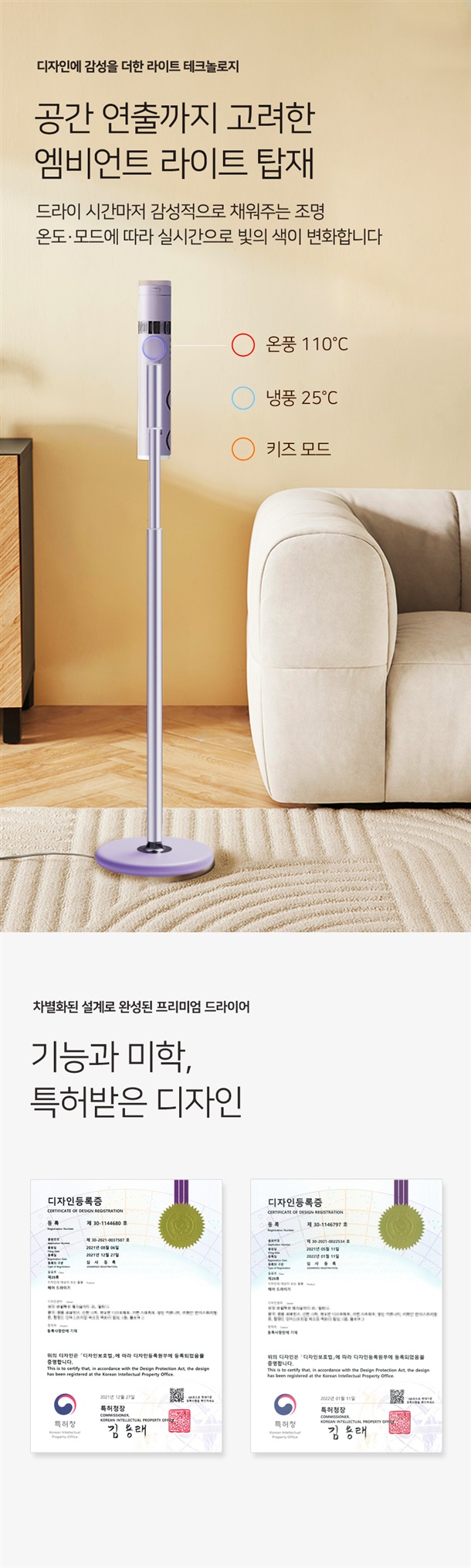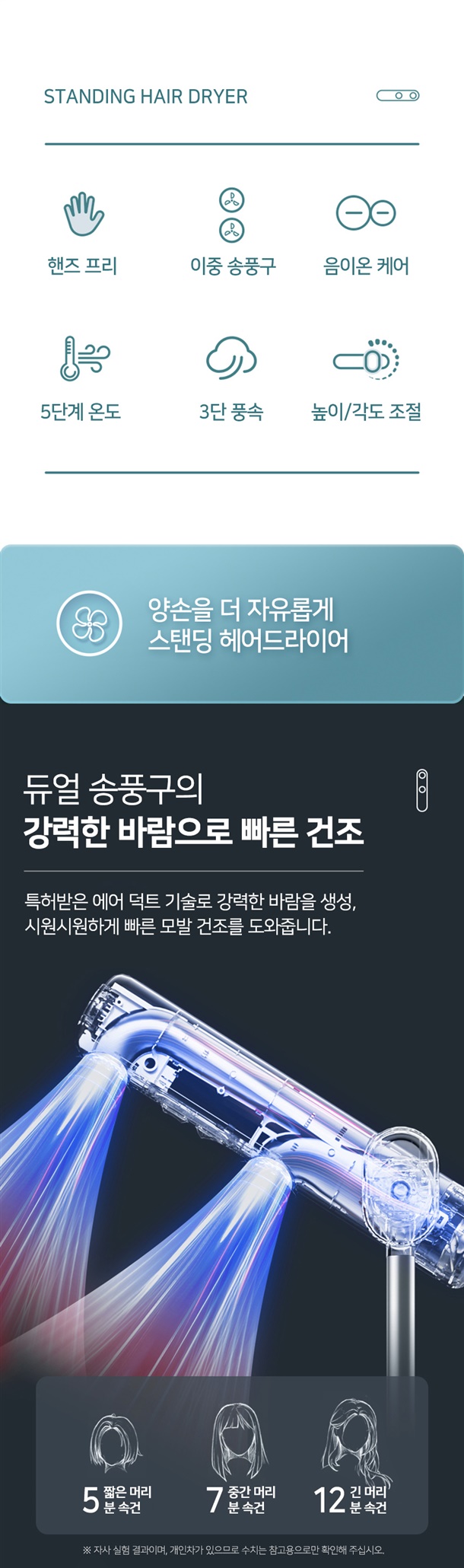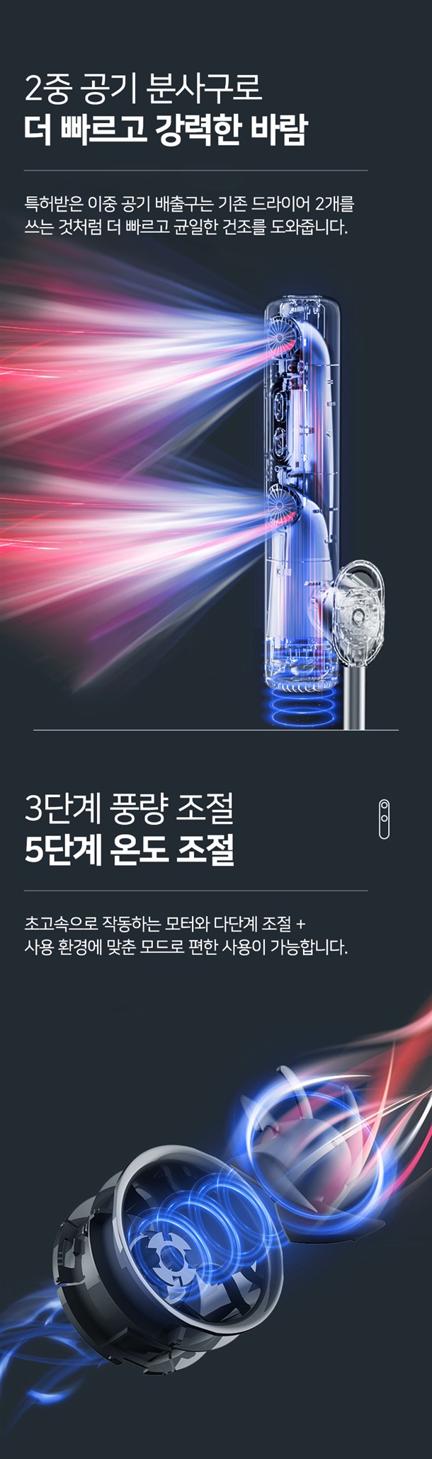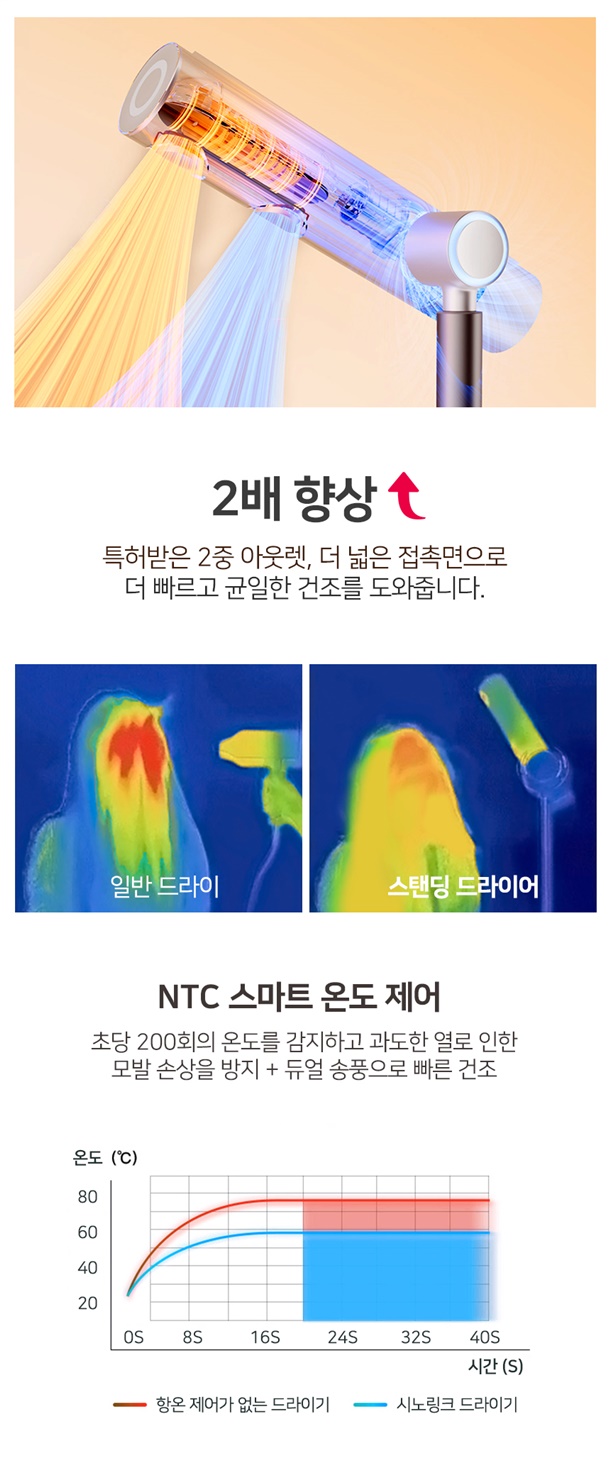 2. 듀얼 송풍구 의 강력한 바람으로 빠른 건조(특허기술 - 에어 덕트)