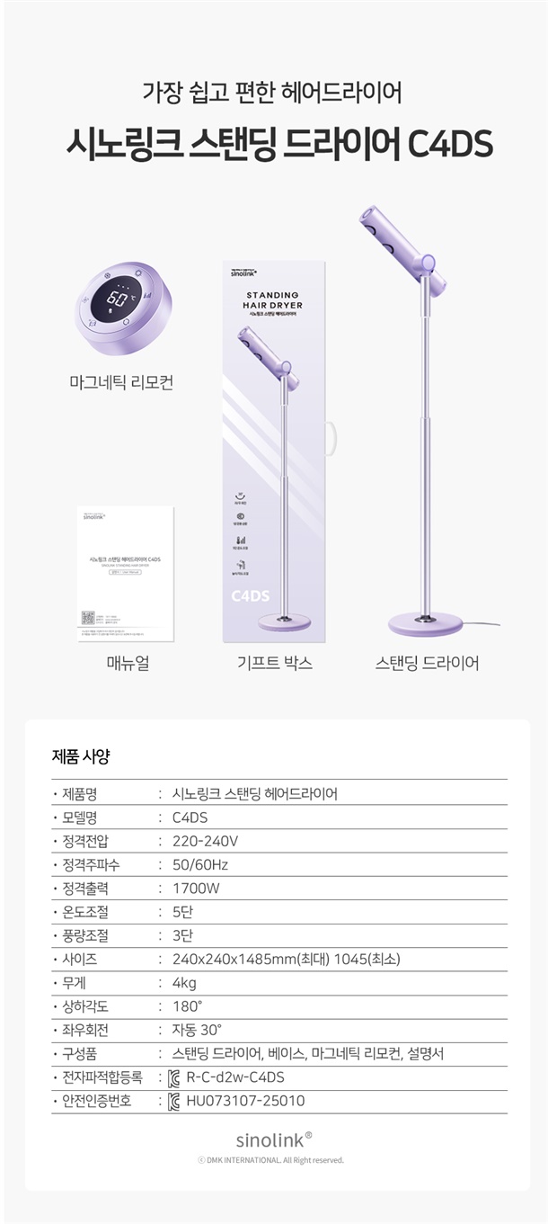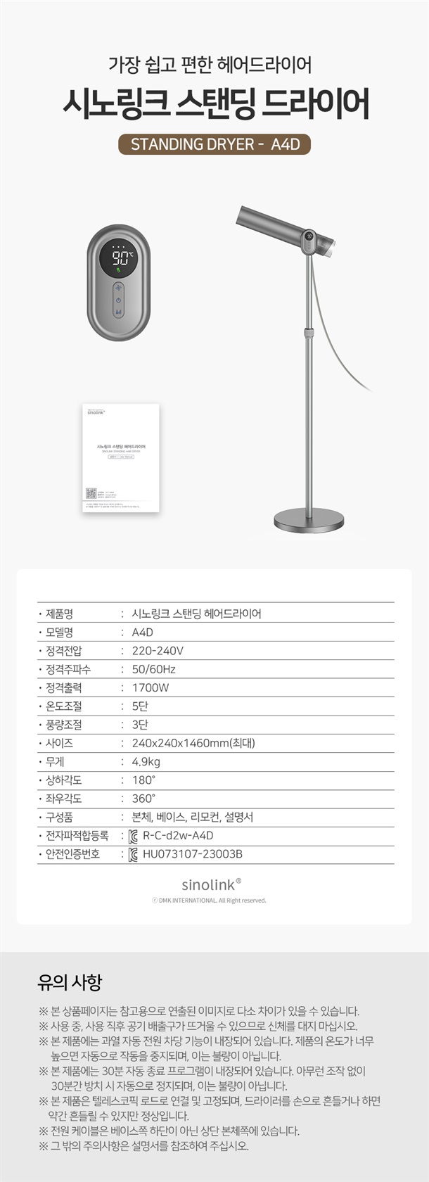 *상품명 : 2024년 신형 시노링크 스탠드 드라이어 A4D