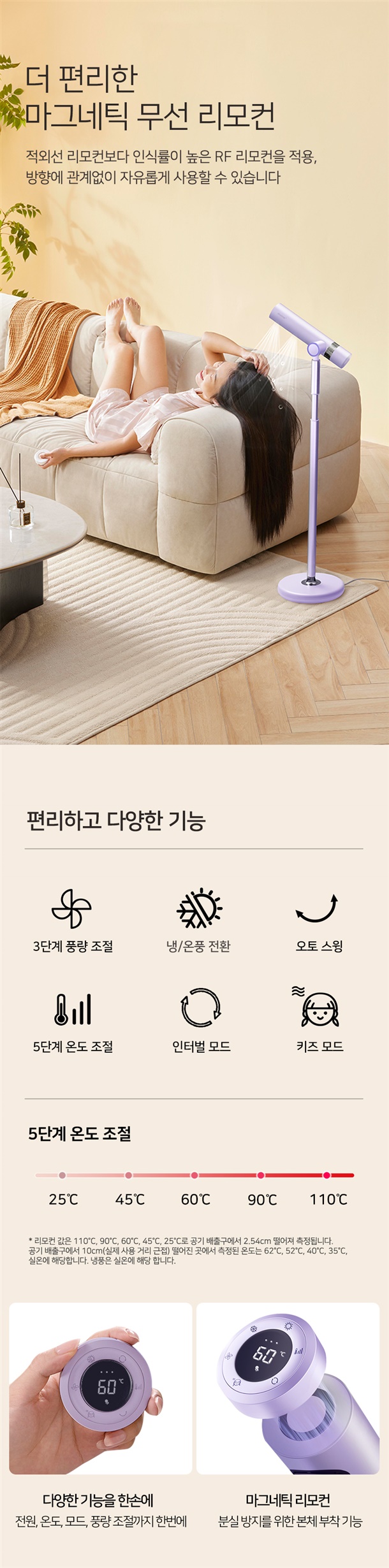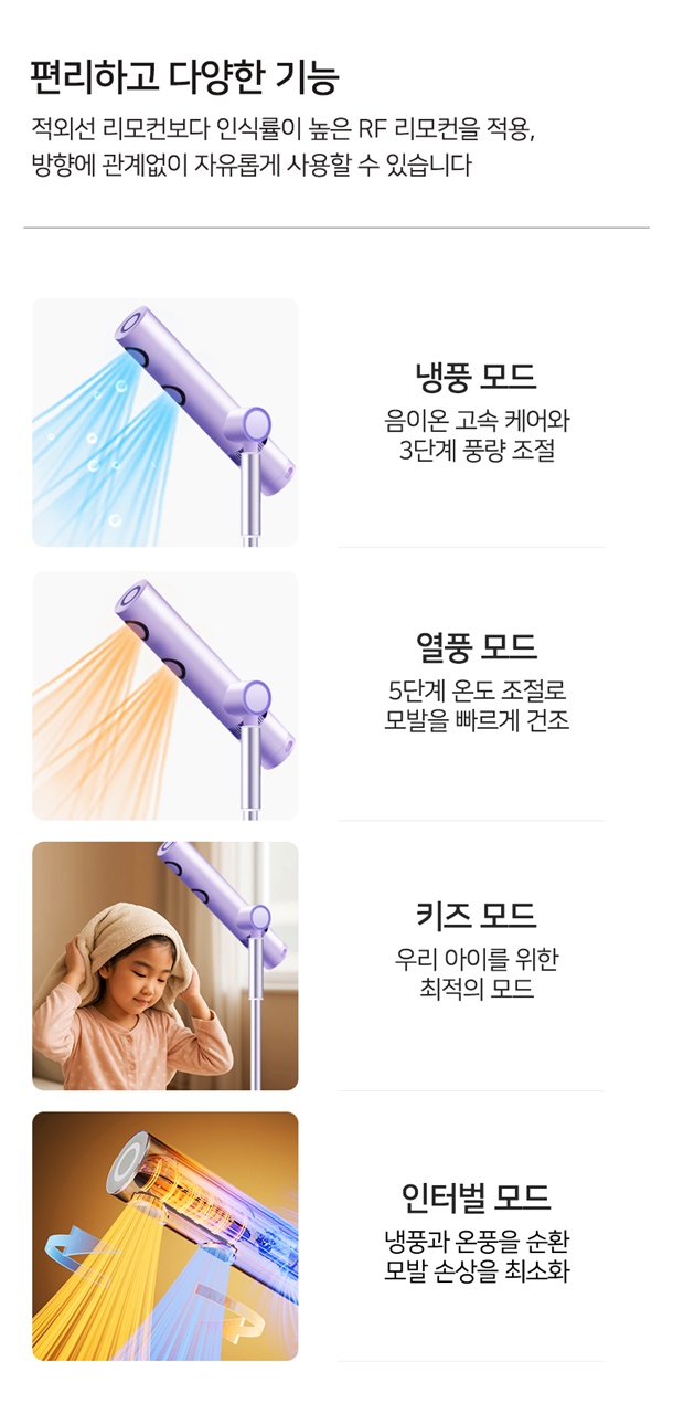 9. 3단계 풍량조절, 냉온풍 전환,5단계 온도 조절,인터벌 모드,키즈 모드