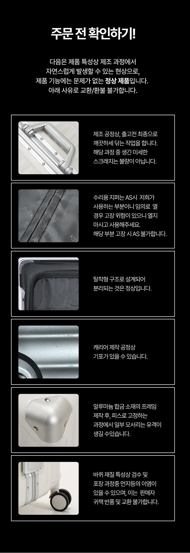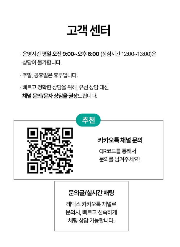 · 상품 불량 사유와 사진을 남겨 주시면 빠른 처리가 가능합니다.