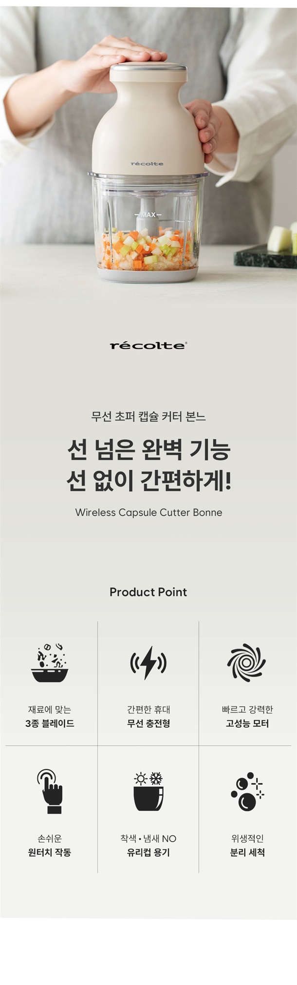 *상품명 : 레꼴뜨 무선초퍼 캡슐 커터 본느