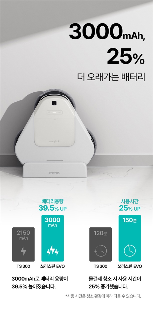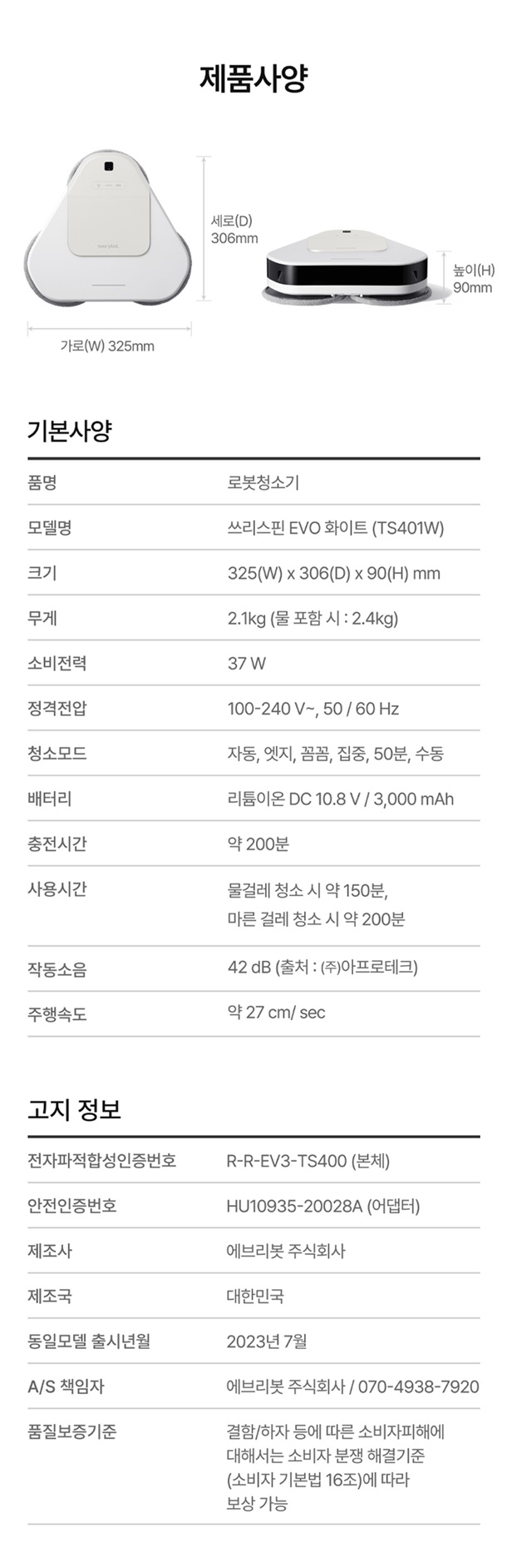 에브리봇 쓰리스핀 EVO 물걸레 로봇청소기 TS401W-328000원