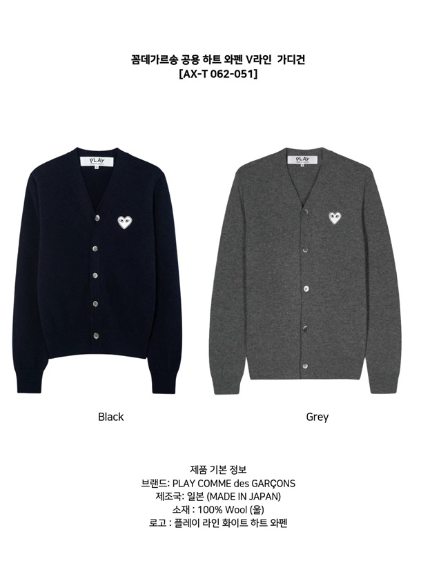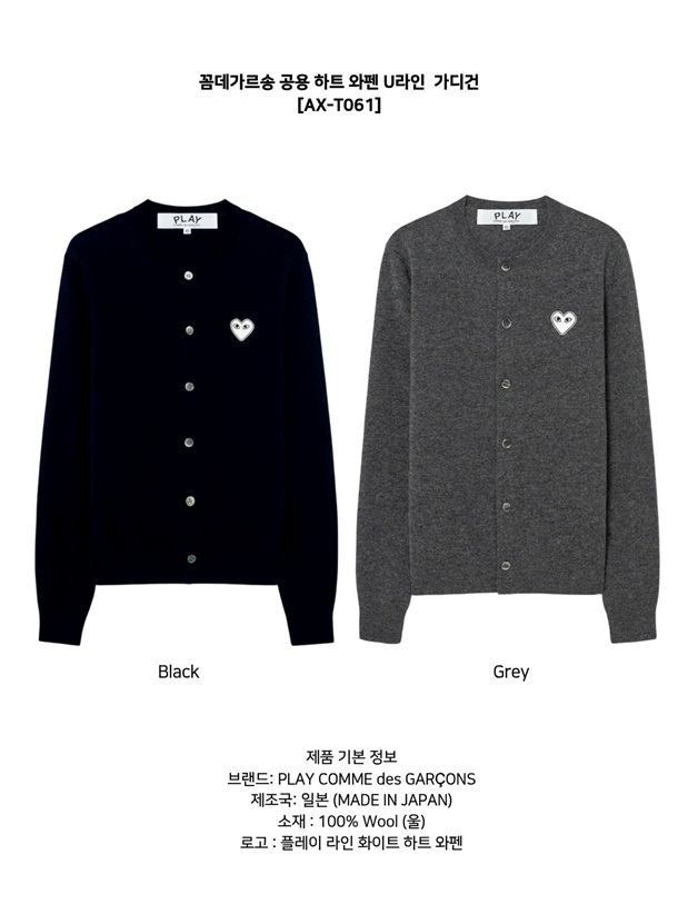 *상품명 : 꼼데가르송 화이트 하트 라운드넥 니트 가디건