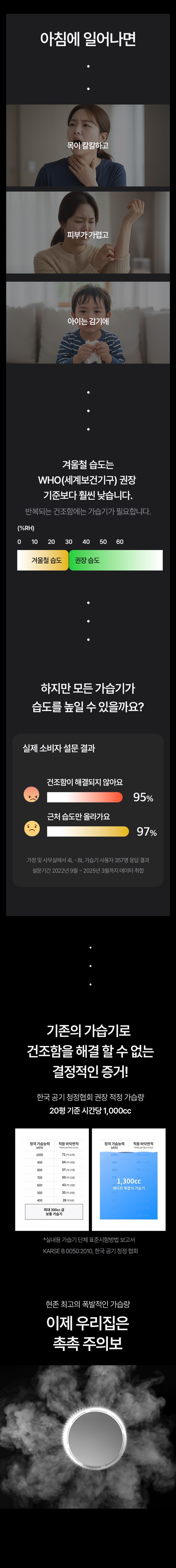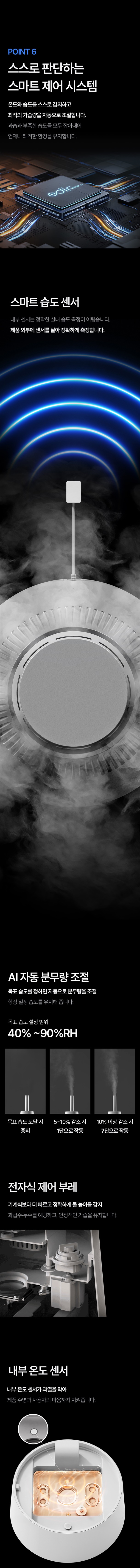 4. 직관적인 터치식 디스플레이와 리모컨, AI(스마트) 습도 조절, 타이머, 자동 습도 조절 기능을 지원한다.