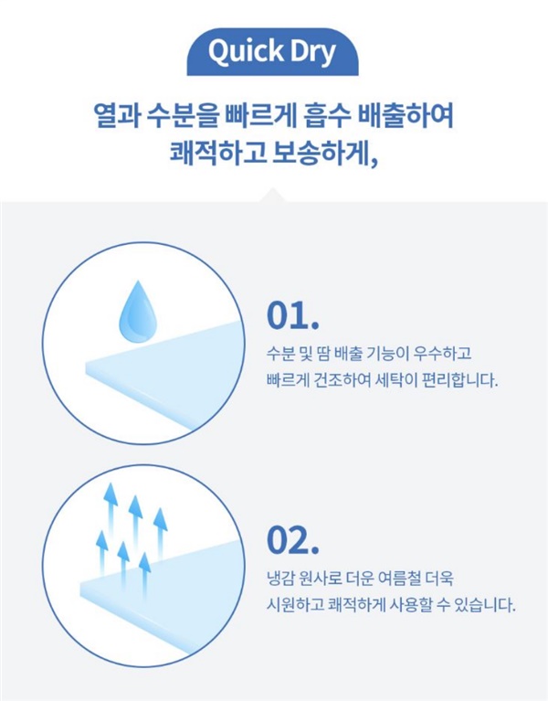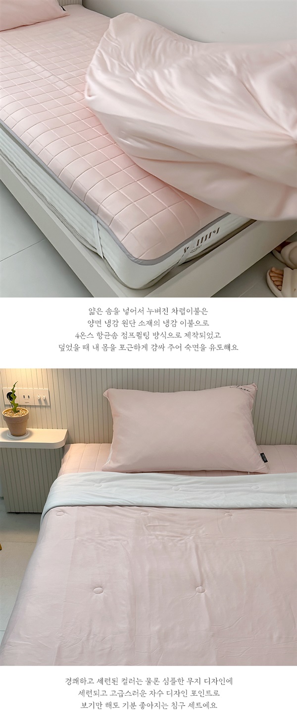 피부가 닿자마자 진짜 시원한 기능성 냉감 소재를 사용한 침구에요