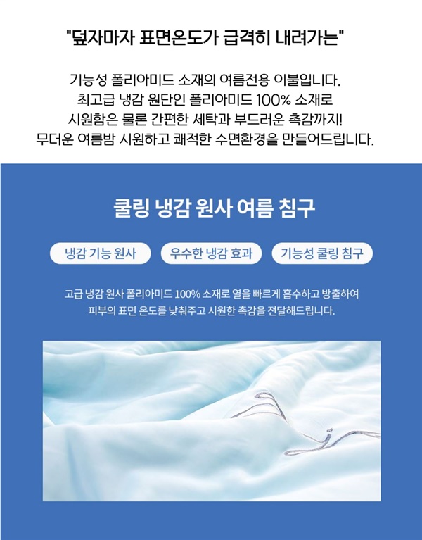 냉감 폴리아미드 100% 소재로 올여름 꿀잠 예약하실 분들~ 얼른 서두르세요 공구 최저가랍니다