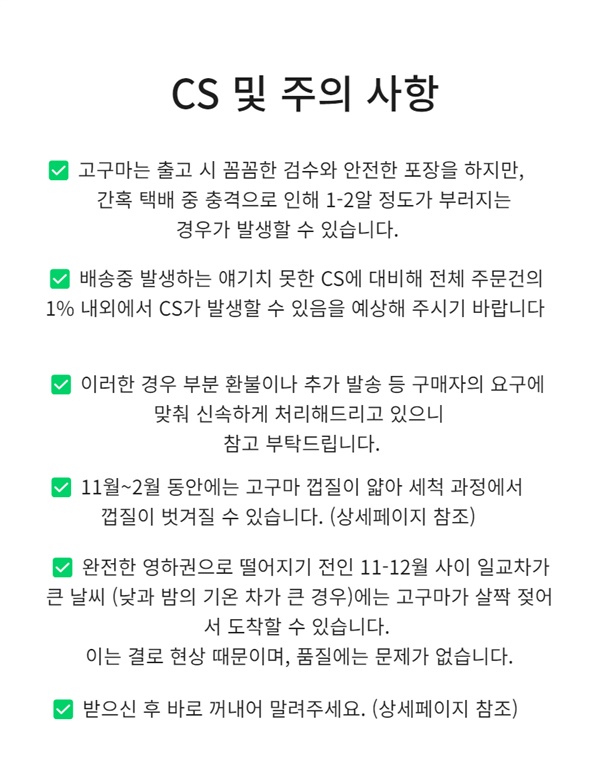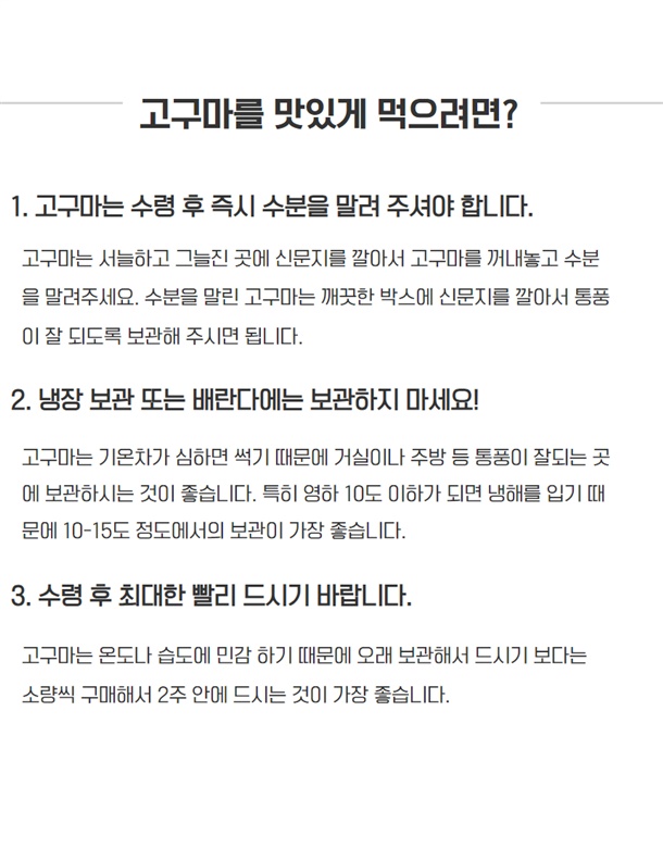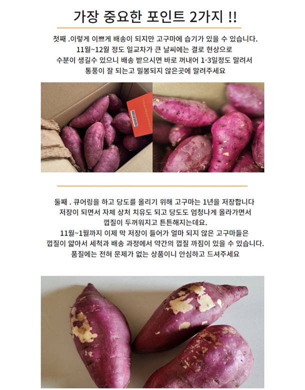 * 배송 받으면 바로 개봉해 주시고 박스를 열어서 바람이 잘통하는 그늘에 보관해주세요