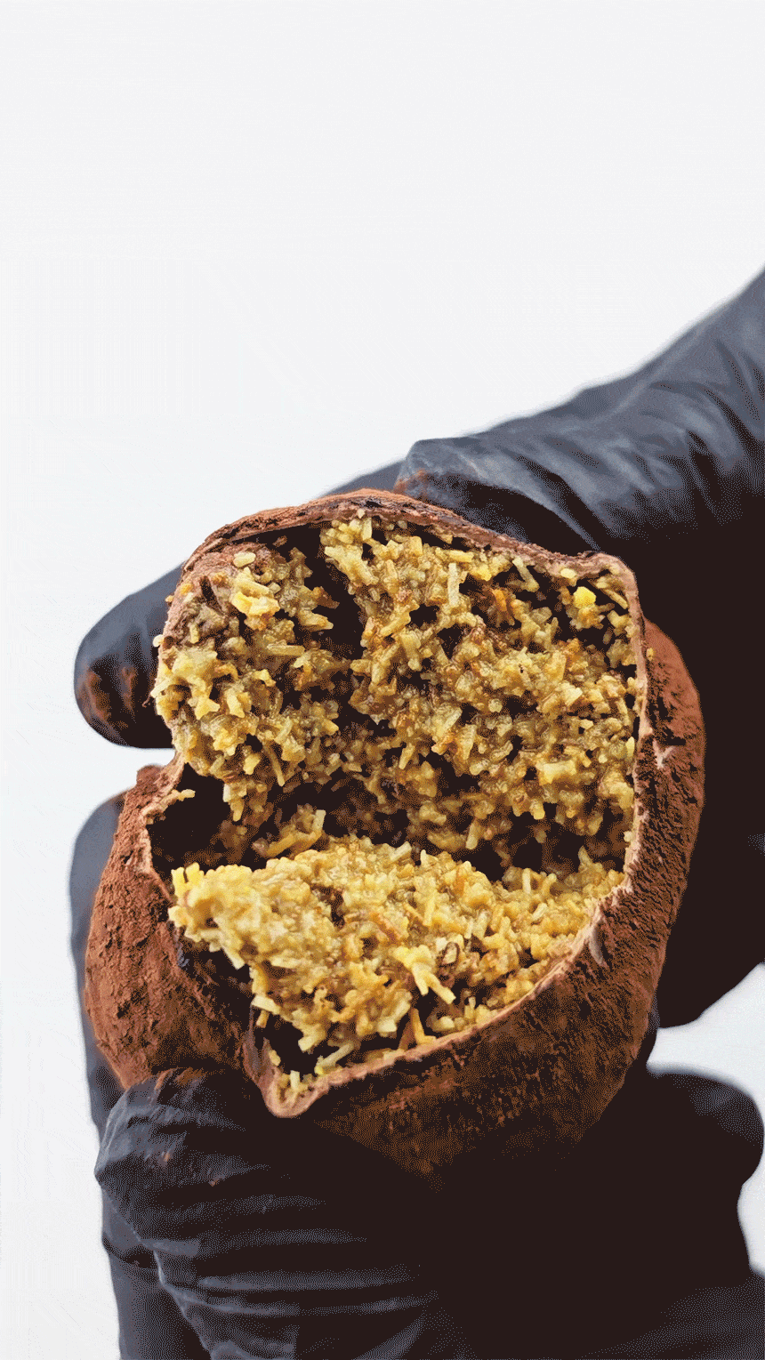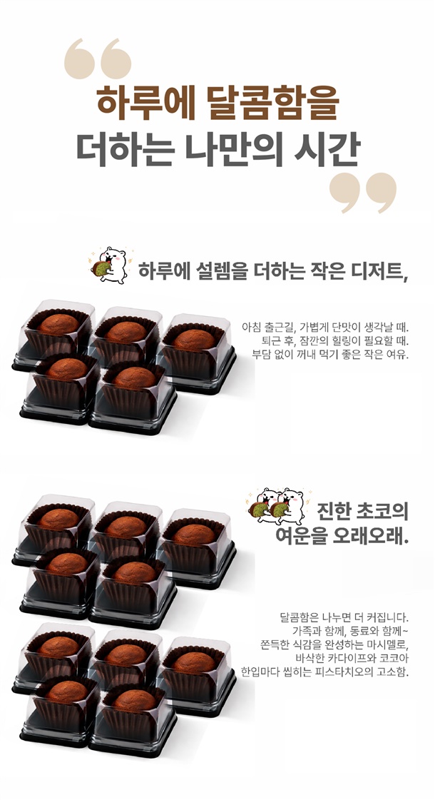 * 마시멜로우에 다크초콜릿을 소량배합해서 만들었고, 마지막 과정에서 코코아 분말을 묻혔습니다!