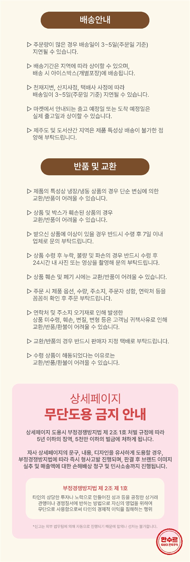 · 배송비 : 4,000원(3개 마다 기본배송비 반복 부과)