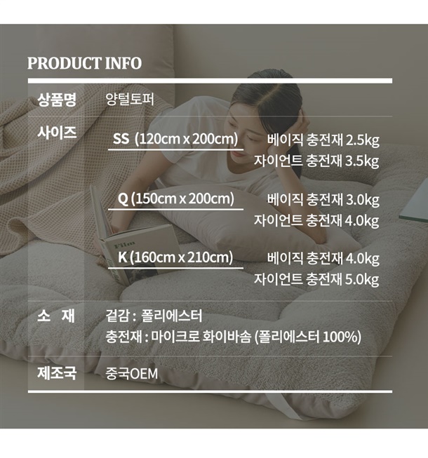 *상품명 : 두꺼운 사계절 자가발열 집착토퍼 매트리스