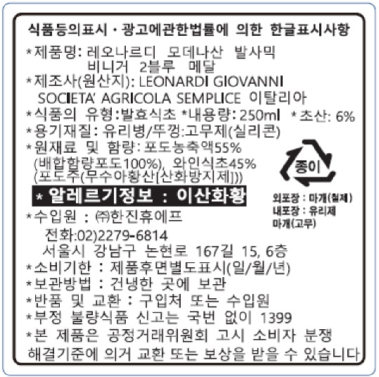 *상품명 : 레오나르디 모데나산 발사믹