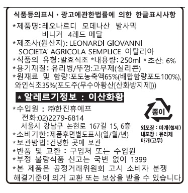 ✔️레오나르디 모데나산 발사믹 비니거 4메달 레드 8년 숙성"