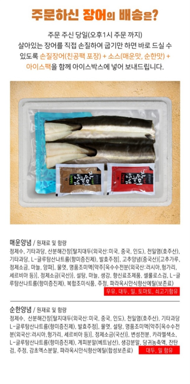 *구성: 장어 1kg (손질후 600~700g)+장어소스+채초생강