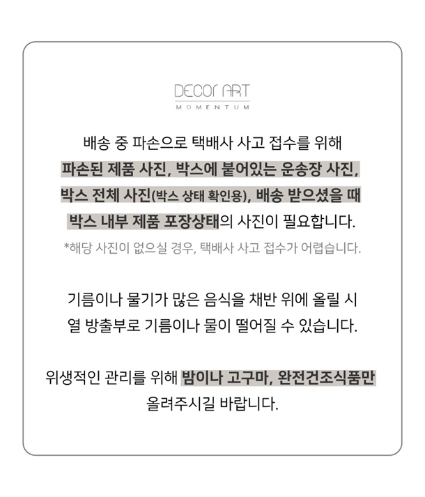 · 상품 불량 사유와 사진을 남겨 주시면 빠른 처리가 가능합니다.