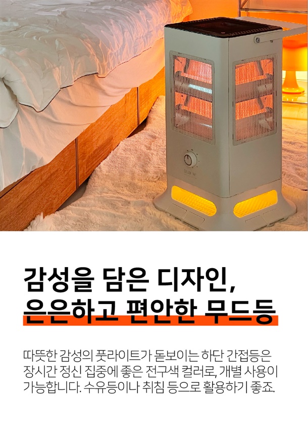 난로 하단에는 사방으로 은은하게 퍼지는 무드등이 장착되어 있습니다.