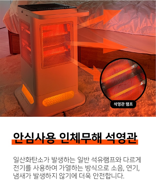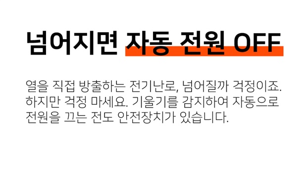 난로가 쓰러질 경우 자동으로 전원을 차단하는 안전장치가 탑제되었으며