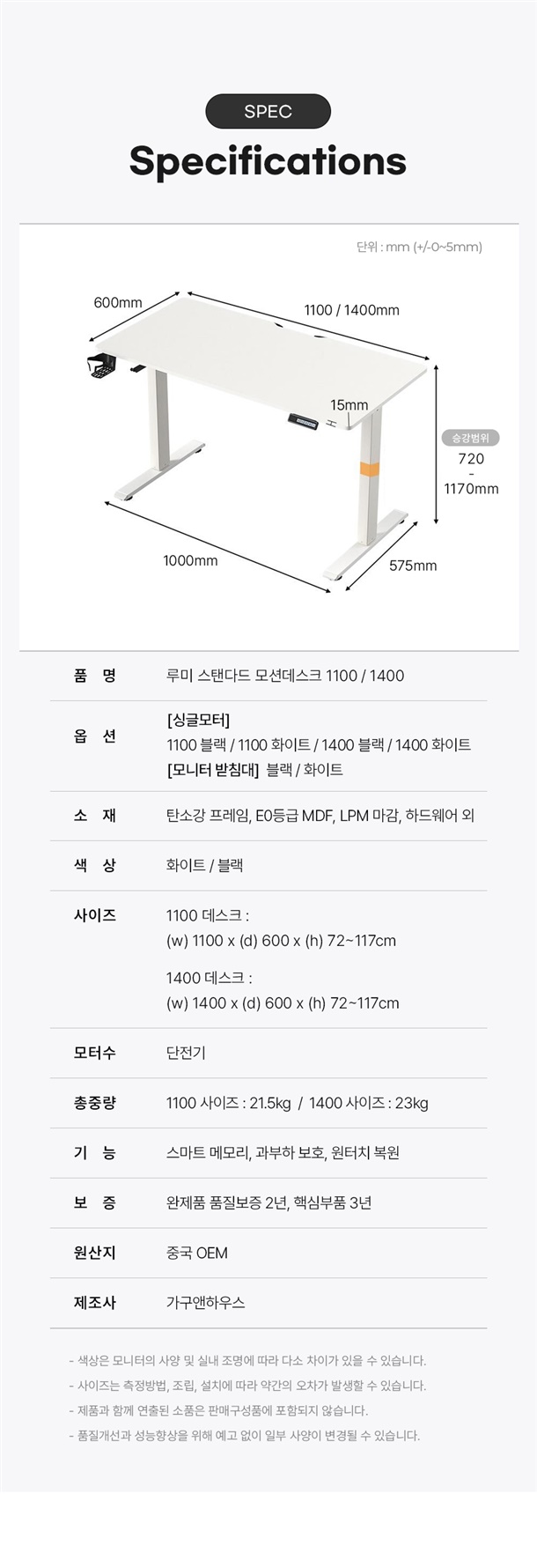 *상품명 : 루미 전동 모션데스크 화이트