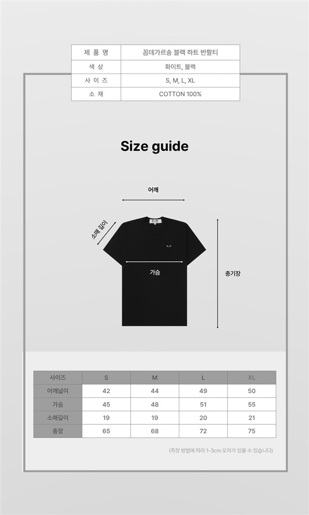 *상품명 : 꼼데가르송 블랙 하트 반팔티