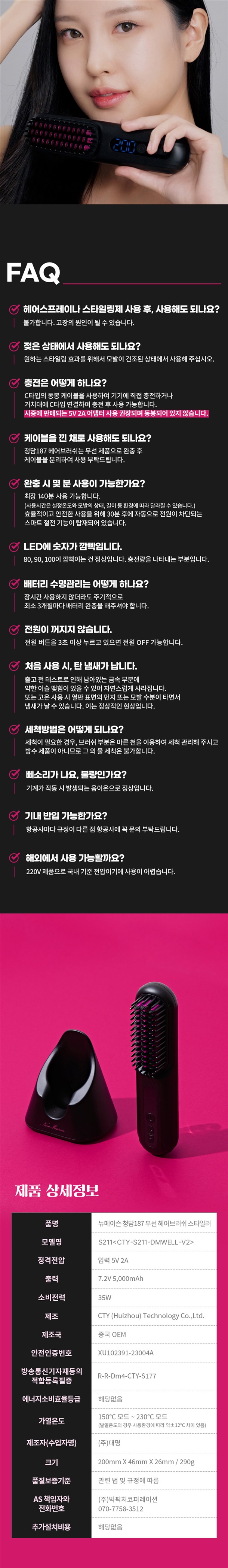 *상품명 : 뉴메이슨 청담 187 무선 브러쉬 스타일러