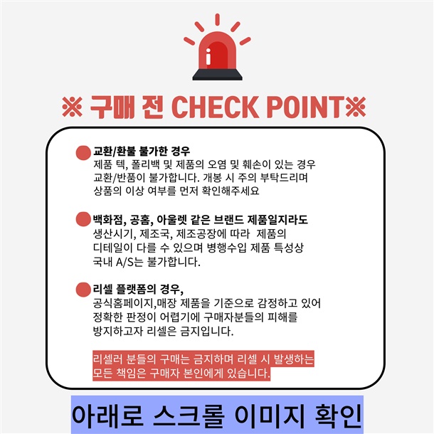 · 일부 상품에 대해서 교환/반품 정책이 위와 상이할 수 있습니다.