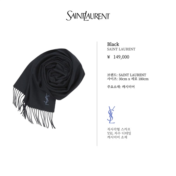 *상품명 : YSL 캐시미어 입생로랑 자수 머플러