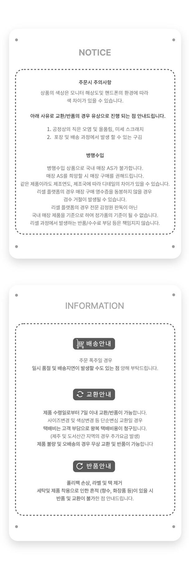· 변심 교환/반품의 경우 왕복 택배비를 부담해 주셔야 합니다. (택배비 상품별 상이)