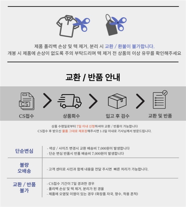 · 상품 불량의 경우 배송비는 쇼핑몰에서 부담하게 됩니다.